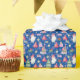 Christmas Gnome for Holidays Pattern Blue Wrapping Paper. Features a blue background and pattern of gnomes, presents, holly, candy canes, Christmas trees, and Santa's bag. Personalise this tiled image. Edit it for more customisation.