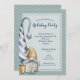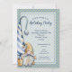 A cute thumbs-up bearded gnome and a Christmas tree on blue, tan and green stripes with your holiday Christmas party details in chic lettering, perfect for office holiday party invitations, Christmas party invitations and more. MATCHING items in our collection.