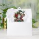 Cute picture of a gnome holding flowers and a sign that says, "Merry Christmas" , is featured on this paper ornament card. Gnome is on the front of