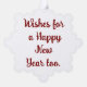the ornament card and back of ornament card reads, "Wishes for a Happy New Year too". A sweet way to send family and friends a special card for Christmas! Includes ribbon for hanging too.