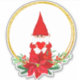 Beautiful Christmas gnome and poinsettia flower in golden circles. Gnomes stand for magic, love and joy!