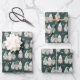 Christmas Gnomes in green and gold on these Christmas wrapping paper sheets. Set of three sheets.