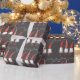 Cute gnomes wrapping paper red and white on black. with hanging string lights. Modern and whimsical.