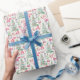 Beautiful wrapping paper decorated with a seamless watercolor pattern of Christmas gnomes, gifts, pine branches, bows, lanterns, and candy canes. A soft, charming holiday style that makes presents look magical and festive for Christmas morning.