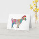 Mark the Christmas season with this quirky artsy xmas goat. Funny colourful splatter paint in pink purple yellow and teal Goat wearing a Santa hat. Festive Farm Animal Humour holiday card to make your friends and family laugh. Artsy Original artwork and word play quote by artist Catherine Sweetman