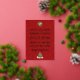 A gorgeous gold foil design of Christmas stacked word art text on the front of a red card.