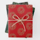 Christmas gold red green black wreath evergreen wrapping paper sheet