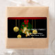 This is Christmas Gold Tree with Black Background return address label design. This design feature is a gold handwritten font with scroll frame accents on a White Snow Glitter background with a rustic textured look. Custom return address text. Personalised address labels for all your mailings.