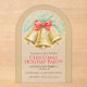Three golden bells and red bow watercolor Christmas party invitations. Personalise with your own party celebration details and family or company initials or just remove. Original hand painted watercolor art and design by Sarah Trett for www.mylittleeden.com