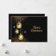 Christmas Golden Ornaments Shiny Stars Black Holiday Card. Unique, beautiful, stylish design. Easy to be personalised. Font style, size and colours can be changed. Matching items are available.