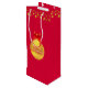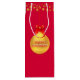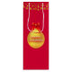 Beautiful gift bag with a big golden Christmas ball and golden polka dots on red background. Happy holidays text can be personalised. Ideal for wine and other gifts.