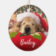 How about a cute ornament to make your holidays merry this year? Design features a photograph of a golden retriever dog who is asleep on a pillow under a Christmas tree and wearing a red Santa hat. Personalise with a name or phrase.