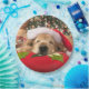 Add a little golden cheer to your next holiday party with these cute paper plates! Design features a photograph of a golden retriever dog who is asleep on a pillow under a Christmas tree, and wearing a red Santa hat.