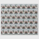 An old red truck decorated with a festive wreath carries a group of playful Golden Retriever puppies through the snowy countryside