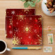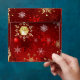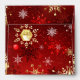 Red Christmas background with gold and white jewellery snowflakes. Golden snowflakes.