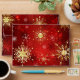 Red Christmas background with gold and white jewellery snowflakes. Golden snowflakes.