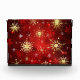 Red Christmas background with gold and white jewellery snowflakes. Golden snowflakes.