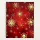 Red Christmas background with gold and white jewellery snowflakes. Golden snowflakes.