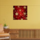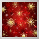 Red Christmas background with gold and white jewellery snowflakes. Golden snowflakes.