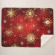Christmas Golden Snowflakes on Red Background Sherpa Blanket