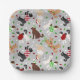 Cute Christmas Goldendoodle / Labradoodle dogs in festive holiday outfits. Dogs with black, brown, tan, cream and white coats wear Santa hats, antlers, sweaters on a holiday background with scattered ornaments.
