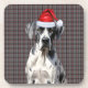 Fun coaster set for the person who loves their Great Dane dog. This one wears a Santa hat for a stylish approach to the holiday season, and sits cutely against a red and grey holiday plaid background to decorate your home or office with seasonal pet lover joy.
