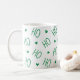 Chic, festive green and white Christmas coffee or hot cocoa mug. Green hearts and Ho Ho Ho text on elegant white mug. Classic and chic design fit for a joyful merry Christmas and a snowy winter new year celebration. This white christmas coffee mug is a modern home decor item that makes a stylish, cute green Christmas gift or an elegant stocking stuffer.