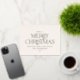 Christmas green elegant minimal modern typography Merry Christmas holiday postcard. Real foil gold, silver and rose gold typography detailing.