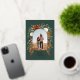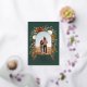 Natural cream, black, terracotta and sage green floral botanical elegant stag floral Merry Christmas holiday photo card. Real foil gold, silver and rose gold typography detailing.