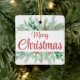 Christmas Green Floral Frame Merry Christmas Ceramic Ornament