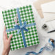 Christmas Green Gingham check pattern gift wrapping paper. High quality printed matte, glossy, linen or Tyvek paper gift wrap paper. Classic Gingham chequered pattern. Made and printed in the USA. Ideal for birthday, anniversary and wedding gifts or Christmas presents.