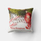 Beautiful Christmas decoration with a green pine branch, red lanterns and silver pearls over white background. Merry Christmas- handwritten. Customisable throw pillow template