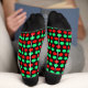 Green and red dotted stripes on black Socks. Ideal for Christmas.
