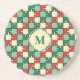 Christmas Green Red Geometric Puzzle Piece Pattern Coaster