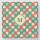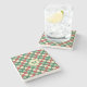 Christmas Green Red Geometric Puzzle Piece Pattern Stone Coaster