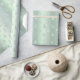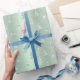 The image is a pattern of Christmas trees against a green gradient background. The gradient background transitions smoothly between shades of pale green and light silver. The Christmas trees are stylised with digitally designed shimmering, metallic textures. Each tree is topped with a small star.