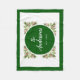 This Christmas fleece blanket offers a watercolor graphic of pine branches accented with sprigs of red berries. The graphic appears around a dark green circle which features handwritten style text for personalising.