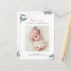 holiday birth announcement card with custom photo and winter greenery