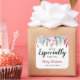 The size is perfect and the design has a softness with the beautiful flowers around the edges. The black lettering on the white background is sharp. It stands out beautifully. I love the Mixture of font styles as it catches the eye.