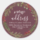 Christmas greenery we've moved moving announcement return address labels: let your friends and family know about your new address with these chic, modern and simple return address labels. Simply add your names and address in white elegant script calligraphy and stylish typography on a deep burgundy background with a stylish touch of christmas wreath with berries. Exclusively designed for you by Happy Dolphin Studio. If you need any help or matching products please contact us at happydolphinstudio@outlook.com. We're happy to help you move in style!