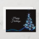 Christmas Greeting Blue Shiny Tree Black Elegant Postcard. Unique, beautiful, stylish design. Easy to be personalised. Font style, size and colours can be changed. Matching items are available.