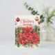 Christmas Greetings, colourful poinsettias with festive ornaments.