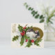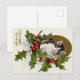 Vintage victorian black and white kitten surrounded by holly and berries post card