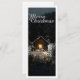 The card shows an atmospheric, wintry scene with a small, illuminated wooden hut in the middle of a snow-covered forest. The warm light source inside creates a beautiful contrast to the dark, peaceful surroundings. The elegant "Merry Christmas" lettering in white gives the motif a festive touch. 🎄✨