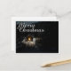 The card shows an atmospheric, wintry scene with a small, illuminated wooden hut in the middle of a snow-covered forest. The warm light source inside creates a beautiful contrast to the dark, peaceful surroundings. The elegant "Merry Christmas" lettering in white gives the motif a festive touch. 🎄✨