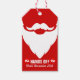 Christmas wrapping gift tag in warm red and white. Reads HANDS OFF until December 25th, fun bold Santa's / father Christmas's famous beard and a no touching hand sign graphic Christmas printed swing gift tag. Personalise with your own greeting and names on reverse. Graphics and design by Sarah Trett.