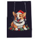 Christmas Happy Corgi in Santa hat with holly Medium Gift Bag