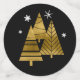 Coordinating designs for Christmas all with an outdoorsy theme in shades of gold, black and white; the first features deer head silhouettes with curving antlers, stylised arrows and tiny snowflakes on a textured-effect background; the second is stripes in gold black and white while the third is a pattern of stylised Christmas trees and snowflakes on a black background. 'Happy Holidays' text is optional. Search ID861 thru ID864 to see additional colour options and other products in this modern, Christmas design set.
