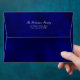 These customisable envelopes have the printed return address on the front flap, with vintage sheet music and a festive decorated harp on the back, with a faux navy blue metallic background. See the collection for matching Christmas cards and accessories.