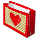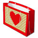 Red Christmas heart on golden and white striped background gift bag. Text can be customised.